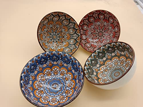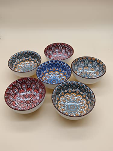 P-PLUS INTERNATIONAL Porcelain Large Soup Bowl Microwave Safe, Cereal Bowl, Ceramic Bowls for Oatmeal, Noodle, Breakfast Bowl, Baking Bowl (Pack of 6, Multicolor)