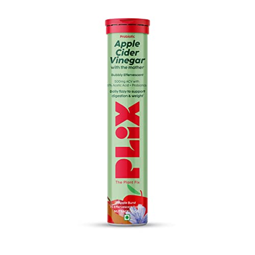 PLIX – THE PLANT FIX Probiotics+ Apple Cider Vinegar Effervescent Tablets | Supports Digestion, Improves Gut Health & Metabolism | With 10bn CFU | 15 Tablets, Pack of 1 | For Men & Women