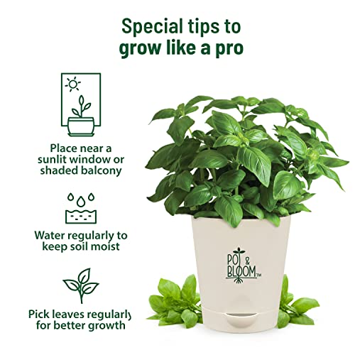 Pot And Bloom Home Gardening Kit – Basil Plant. Herbs in Your Own Balcony: Organic Basil Plant Kit with Basil Seeds, Pot, Sprays & Gardening Soil. Have Fresh Italian Basil. Fresh Basil For Any Recipe