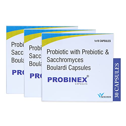 Probinex nutrition daily Probiotics with Prebiotic & Sacchromyces Boulardi Capsules , The Versatile formula of 10 Probiotics & 1 Prebiotic with 4140 million CFUs, Supplement for Men & Women,Improve Gut health,Digestion and immunity, Pack of 30 ( 10*1*3) Capsules