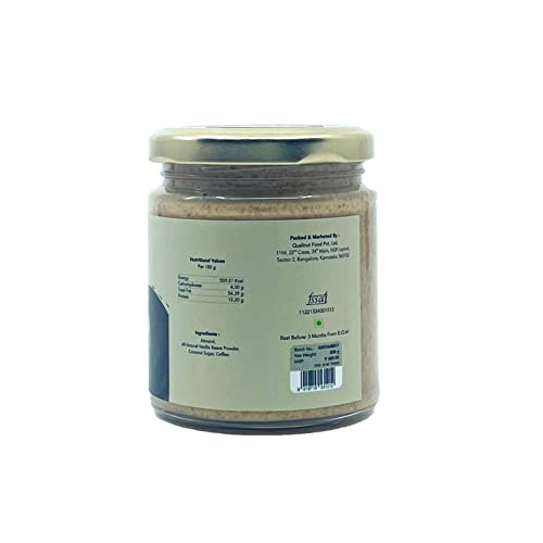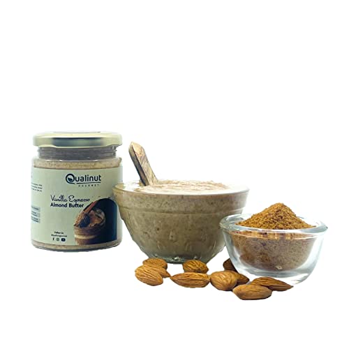 Qualinut Gourmet | Vanilla Espresso Almond butter | 200 Gm | Low GI makes it Diabetic friendly | A healthy alternative to Regular Butter | Goodness of Vanilla