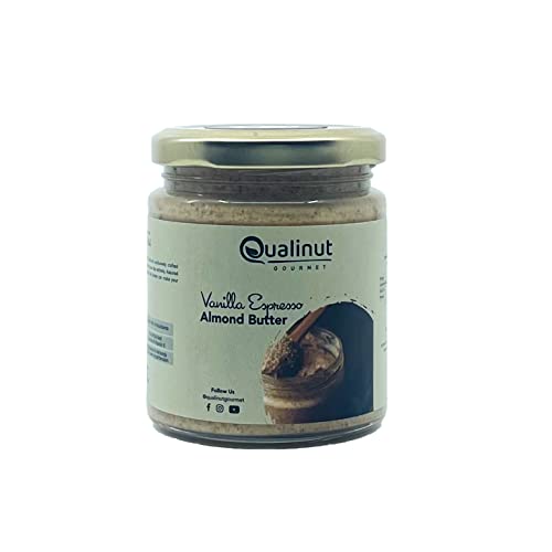 Qualinut Gourmet | Vanilla Espresso Almond butter | 200 Gm | Low GI makes it Diabetic friendly | A healthy alternative to Regular Butter | Goodness of Vanilla