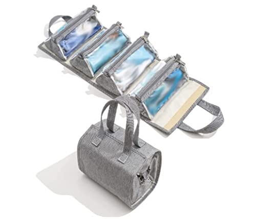 Roll Up Makeup Bag Toiletry Kit Travel Organizer for Men and Women 4 Removable Storage Bags Organize Make Up Cosmetics First Aid Medicine Personal Care Bathroom