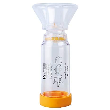 High efficiency one way valve for easy inhalation and exhalation Universal Backpiece, can be used with all commonly prescribed Metered Dose Inhalers Anti-static spacer improves the delivery of MDI by inhibiting the adherence of drug to spacer wall Soft and flexible silicone mask provides comfortable touch and reliable seal Portable design & easy holding Easy disassembled and reassembled for cleaning Mouthpiece cap can protect the mouthpiece from dirt and debris when the device is not in use This product contains no latex and is BPA free Small, medium & large facemask to cater to the different needs Small facemask: 0-18 months Medium facemask: 12 months – 5 yrs. Large facemask or mouthpiece: 5 yrs. + Chamber volume: 175ml For single patient use only