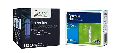 SAAVI URGICALS ROUND TWIST LANCETS PACK OF 100 comes with CONTOUR Plus Glucose Test Strips. Delivers accurate results, even at lower blood glucose concentrations – where reliable readings are critically important Unaffected by many common interfering substances Automatic haematocrit correction and an advanced algorithm provide accuracy across a wide haematocrit range – from 0 percent to 70 percent Blood glucose test strips will usually have a use by date on the strips or box they come in It helps to keep a track of one’s blood glucose and helps to observe how the treatment program is affecting on the blood glucose level and helps to keep diabetes under control