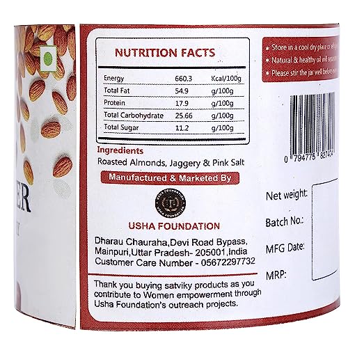 Satviky Almond Butter | 250 g | Sweetened with Jaggery | 24% Protein | No Added Sugar & Color | 100% Roasted Almonds | Vitamin E | Vegan | Gluten Free |…