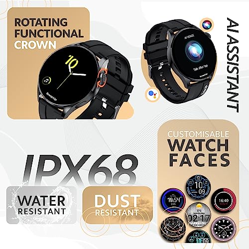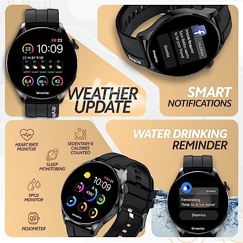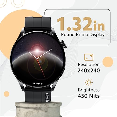 SnapUp Revolve Bluetooth Calling Smartwatch with Snap Sync, 1.32” Prima Round Dial Display, 450 Nits Brightness, Health Tracker, Smart Notifications, Custom Smart Watch Faces – Black