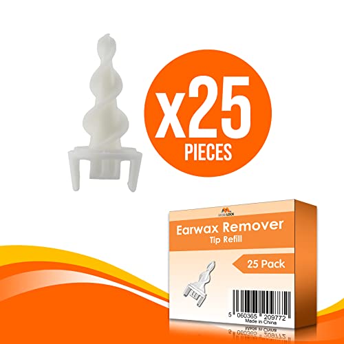 Spiral Ear Wax Remover Tips – Pack of 25 Reusable Silicone Twist Tips – Compatible with Mobi Lock Ear Wax Remover Handle – Personal Hygiene Accessories – by Mobi Lock