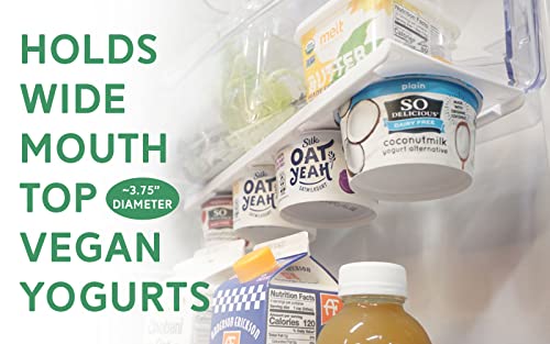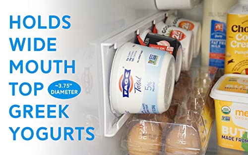 HOLDS UP TO FOUR YOGURT CONTAINERS – Designed to hold any yogurt container up to 3.75” wide, our yogurt slider organizer allows you to store up to four vegan yogurt cups, keto, and greek yogurts.