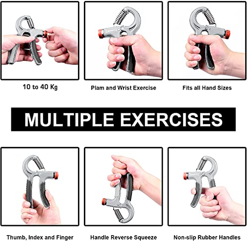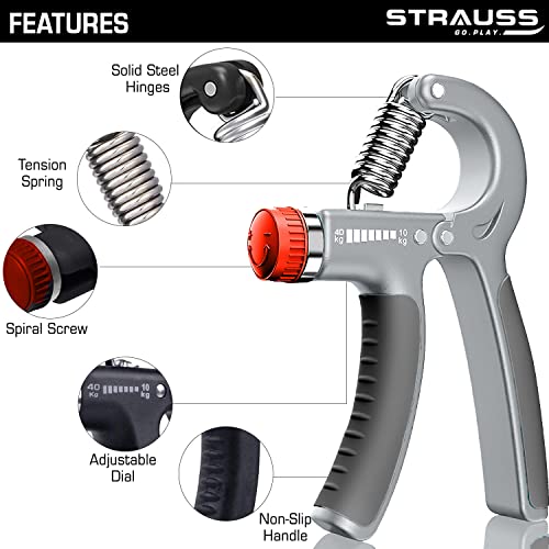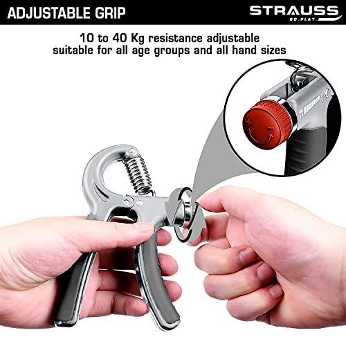 Strauss Adjustable Hand Grip | Adjustable Resistance (10KG – 40KG) | Hand/Power Gripper for Home & Gym Workouts | Perfect for Finger & Forearm Hand Exercises for Men & Women (Black/Grey)