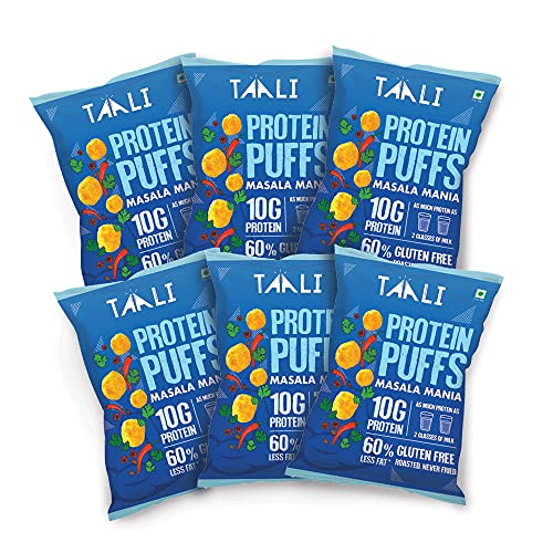 Taali Jowar & Protein Puffs | 60 gm (Pack of 6) | Masala Mania | Healthy Roasted Tasty Snacks, Ready to eat | 100% Veg., Gluten free products, No Cholesterol, No Trans-Fat