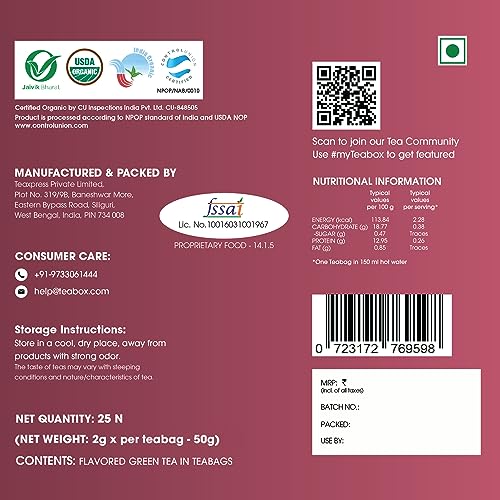 STEEPING GUIDE- Heat 180 ml of water at 80℃ -85℃, Place the teabag in a cup and then pour hot water over it. Steep for 3-4 mins. Drink plain or add honey as per taste. Savor a cup of freshness and relax