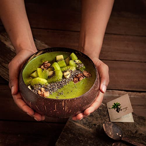 Thenga Artisan Jumbo Coconut Bowl, 900 ML, 1 Bowl, Spoon & Fork | 100% Natural, Perfect for Breakfast – Smoothie – Salad