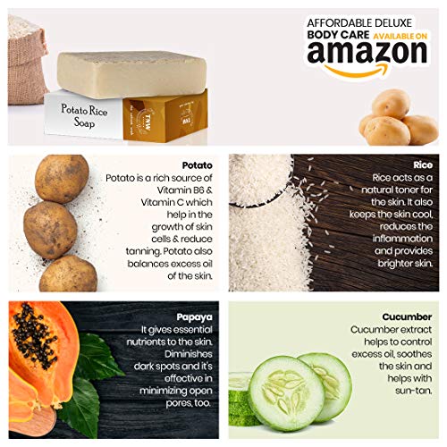 TNW-THE NATURAL WASH Handmade Potato Rice Soap Reduces Tanning & Pigmentation-Diminishes Dark Spots-Minimizes Open Pores-Removes Impurities For Oily Skin with Potato, Rice, Papaya & Cucumber- 100 g