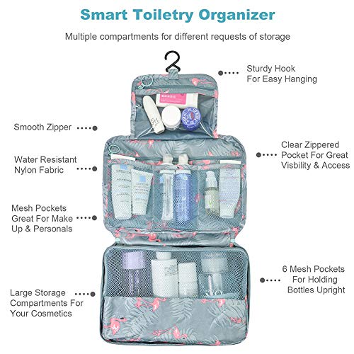 ❤MULTIPLE FUNCTIONS- Multiple compartments for women’s toiletry bag for different requests of storage. Clear pocket is water resistant and easy to clean. Compartments with mesh to keep the toiletries and cosmetics neatly organized. This toiletry bag folds up for easy storage and travel.