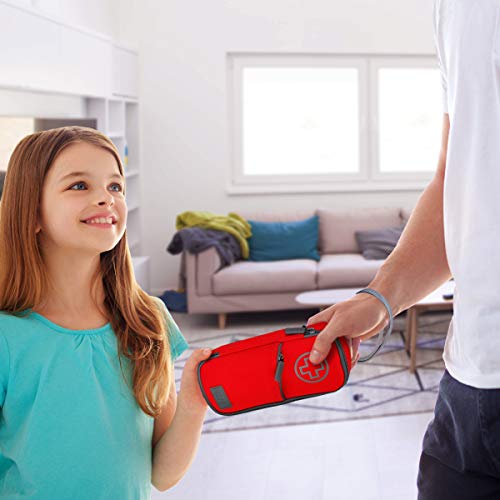 CONVENIENT & COMPACT: The medicine bag is equipped with an exterior pocket, zippered interior storage, interior mesh pocket for small ice packs, and two secure elastic straps for insulin pens