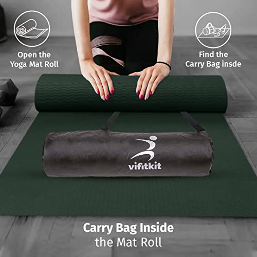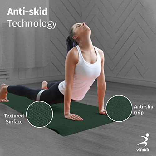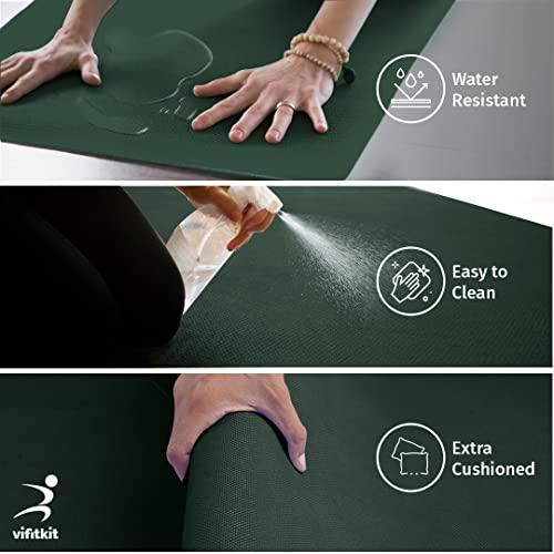 Vifitkit 4mm Anti-Skid EVA+TPE Yoga Mat with Strap for Home Gym & Outdoor Workout for Men & Women, Water-Resistant, Easy to Fold (Bottle Green)