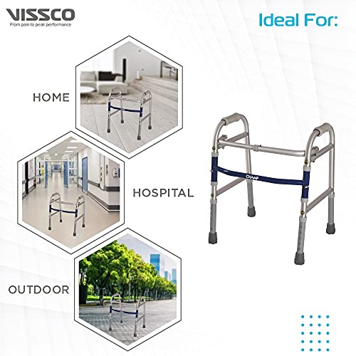 Vissco Champ, Walker for Children – Foldable, Light Weight & Height Adjustable Walking Aid, Weight Capacity 80kg, Made with Premium Grade Rubber Shoes and PVC Grip – Universal (Grey)
