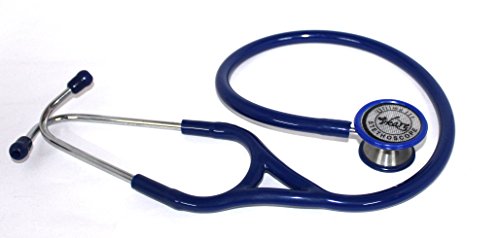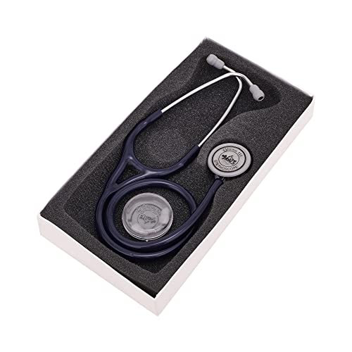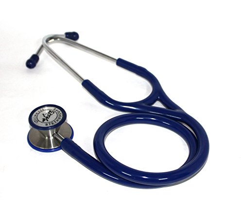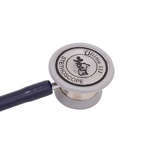 The stethoscope features dual diaphragm bell with solid stainless steel cardiology specialized chest piece crowned with non chill durable PVC rim on both diaphragms.
