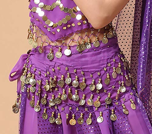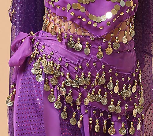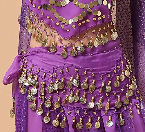 WAYDA Hip Scarf for Belly Dancing, Women’s Sweet Belly Dance Hip Scarf with 128 Gold Coins Skirts for Bellydance, Zumba or Yoga Class, Excellent for Bellydance Practice
