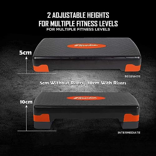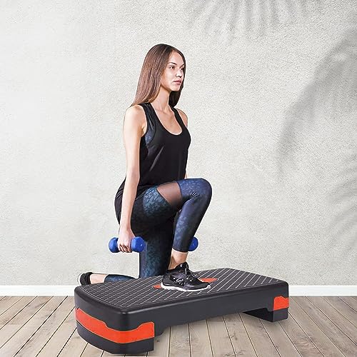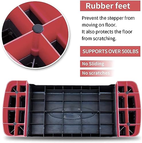 【STURDY, DURABLE & NON-SKID】: The stepper is constructed with durable plastic material with long-lasting properties. The large and heavy-duty platform holds its maximum weight limit of 440 pounds, so you can take every step in confidence. Non-skid feet on each riser prevent sliding and will not leave scratches and marks on your floor.