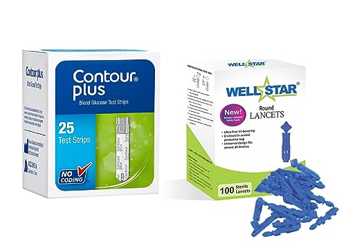 Wellstar ROUND Glucometer Lancets (100) with CONTOUR PLUS 25 Test Strips
