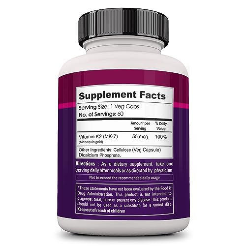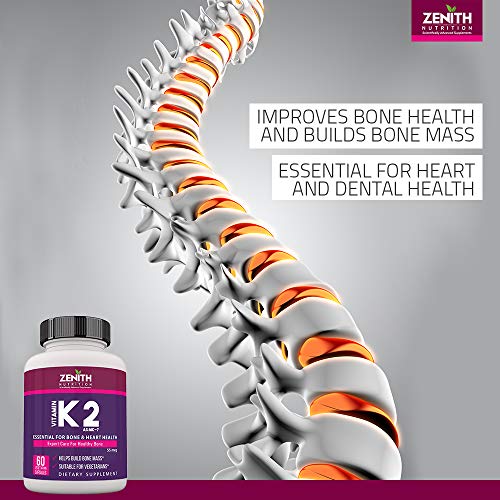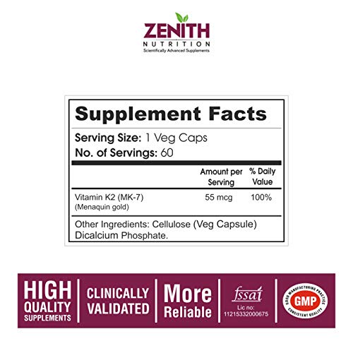 Zenith Nutrition Vitamin K2 as MK7-55 mcg – 60 Veg Capsules | Supports Bones| Promotes Heart Health