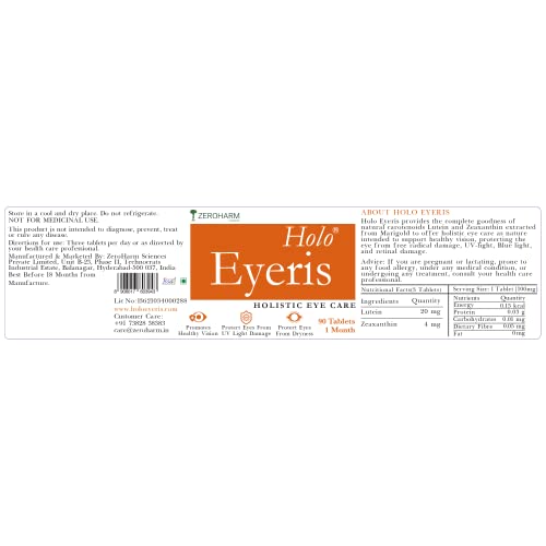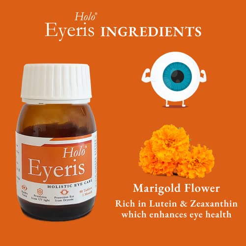 ZEROHARM Holo Eyeris has Eye Vitamins good for Eyes with Lutein & Zeaxanthin | Fights Low Eye Vision, Dry Eyes & Retina Health Protects from UV & Blue Light Defence – 90 Vegan tablet 100mg